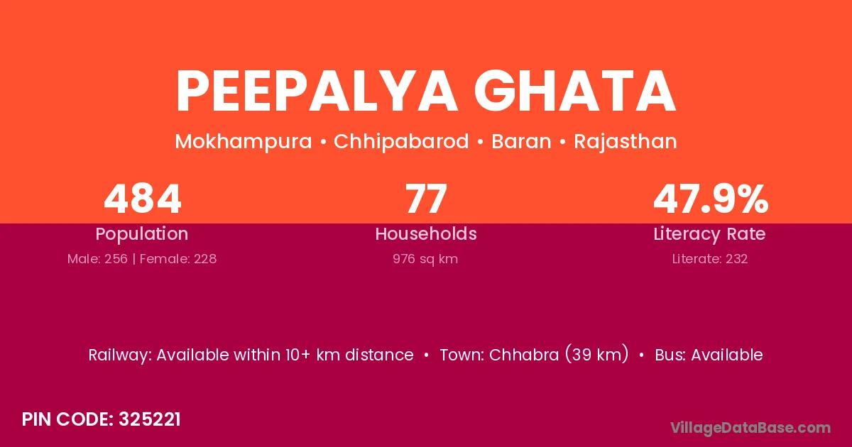 Chhabra (39 km) is the nearest town to Peepalya Ghata village for major economic activities and is located approximately 39 km away.