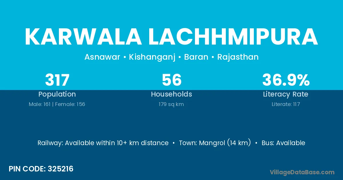 Karwala Lachhmipura village has a total population of 317 people, of which 161 are males and 156 are females.
