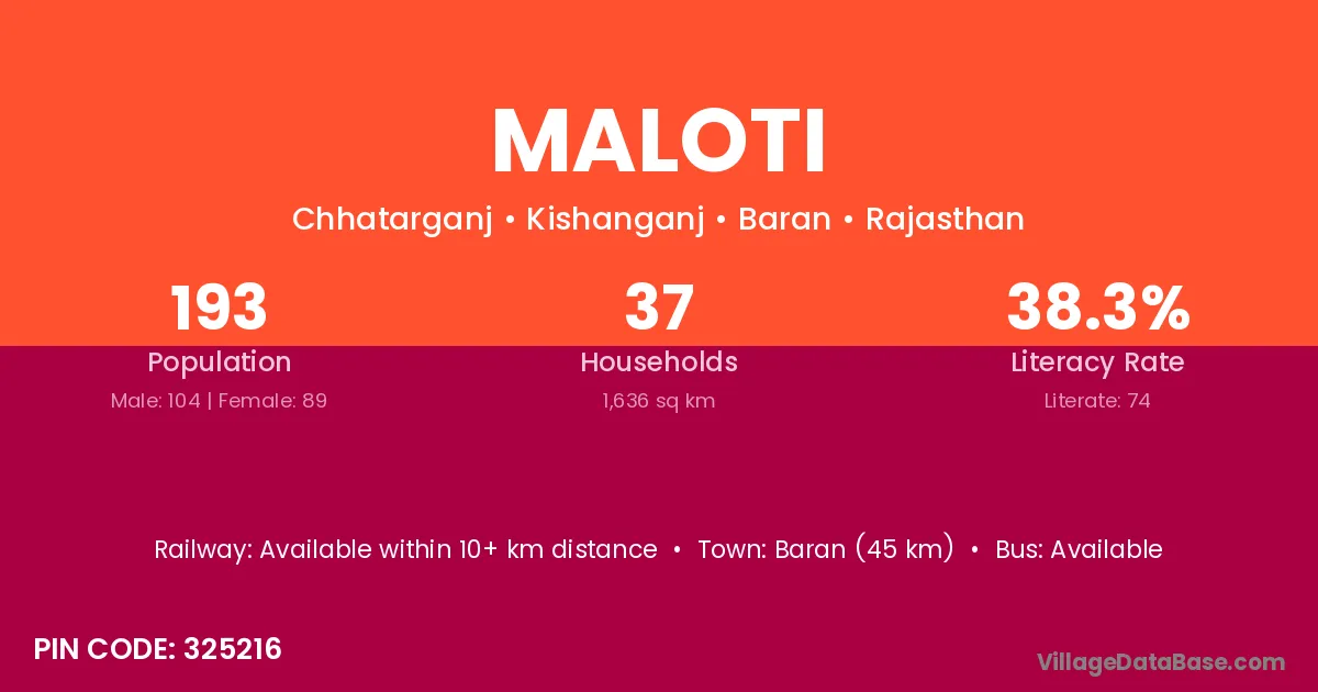 Baran (45 km) is the nearest town to Maloti village for major economic activities and is located approximately 45 km away.