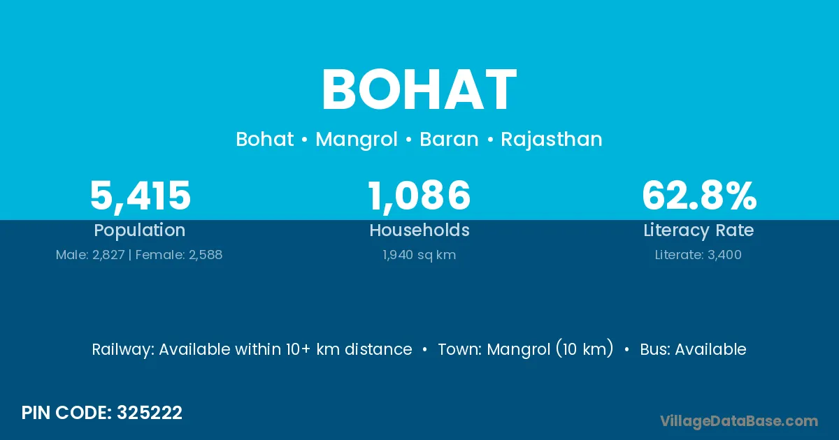 Mangrol (10 km) is the nearest town to Bohat village for major economic activities and is located approximately 10 km away.