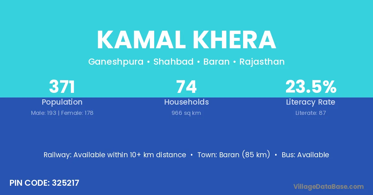 Baran (85 km) is the nearest town to Kamal Khera village for major economic activities and is located approximately 85 km away.