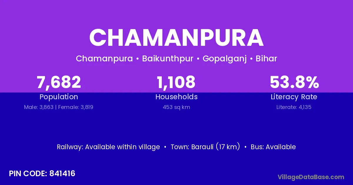 There are approximately 103 households in Chamanpura village.