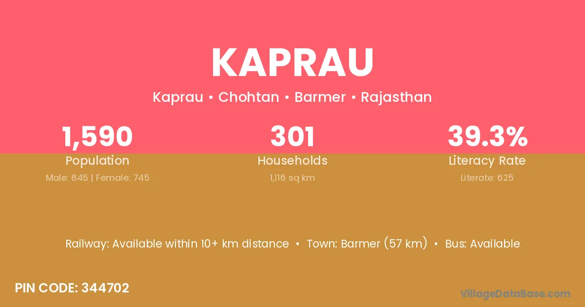 Barmer (57 km) is the nearest town to Kaprau village for major economic activities and is located approximately 57 km away.