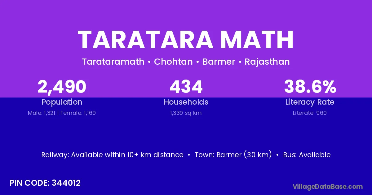Barmer (30 km) is the nearest town to Taratara Math village for major economic activities and is located approximately 30 km away.
