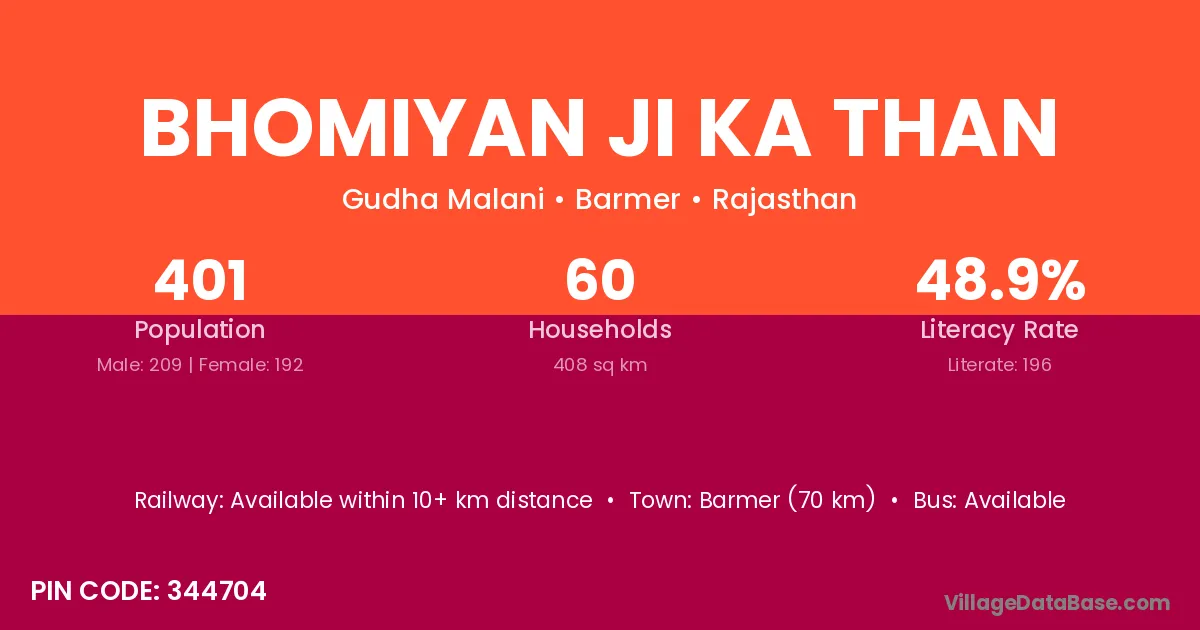 Bhomiyan Ji Ka Than village has a total population of 401 people, of which 209 are males and 192 are females.
