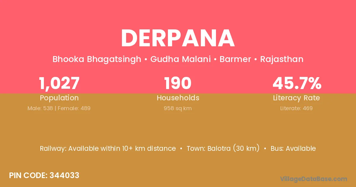 Balotra (30 km) is the nearest town to Derpana village for major economic activities and is located approximately 30 km away.