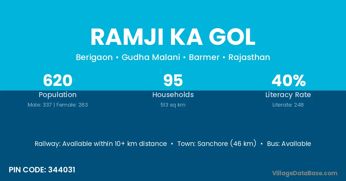 Sanchore (46 km) is the nearest town to Ramji Ka Gol village for major economic activities and is located approximately 46 km away.