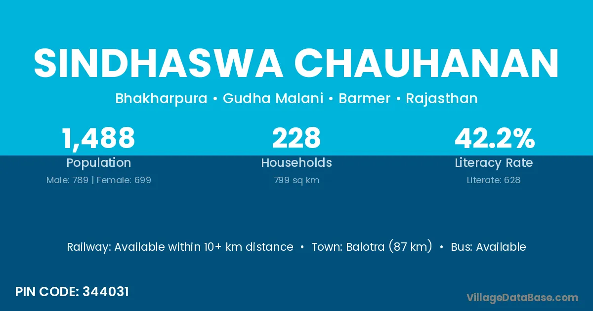 Balotra (87 km) is the nearest town to Sindhaswa Chauhanan village for major economic activities and is located approximately 87 km away.