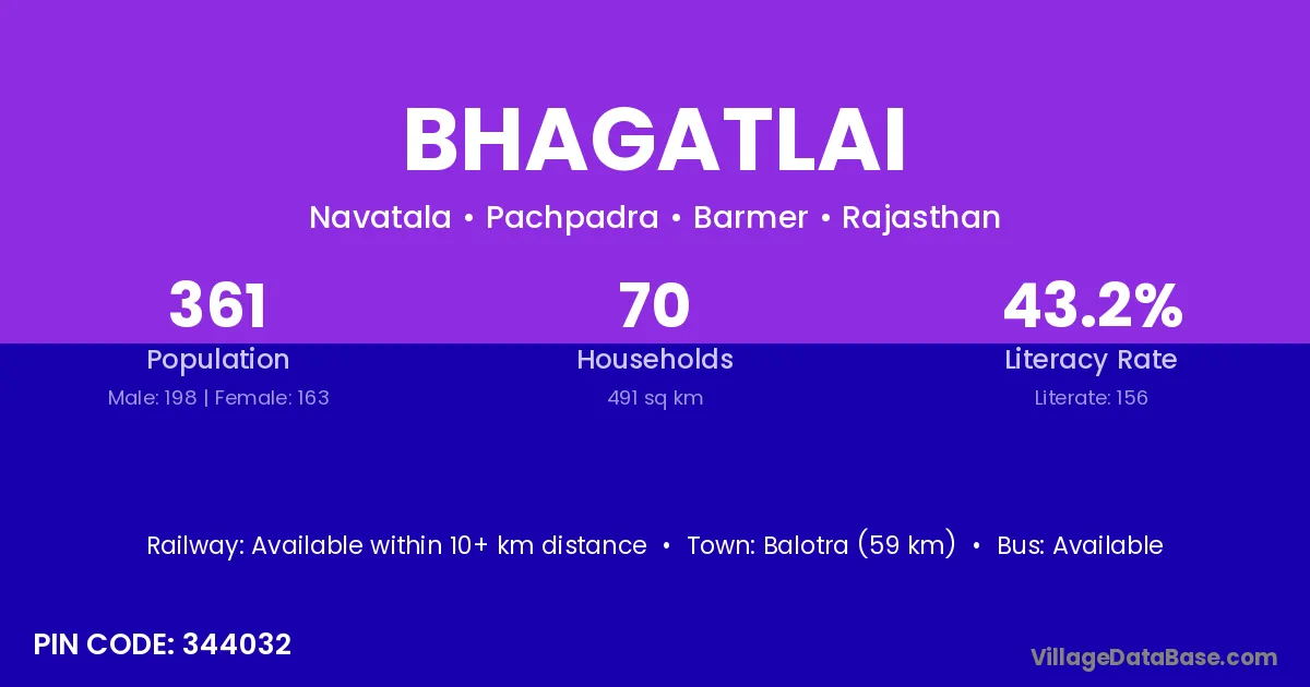 Balotra (59 km) is the nearest town to Bhagatlai village for major economic activities and is located approximately 59 km away.