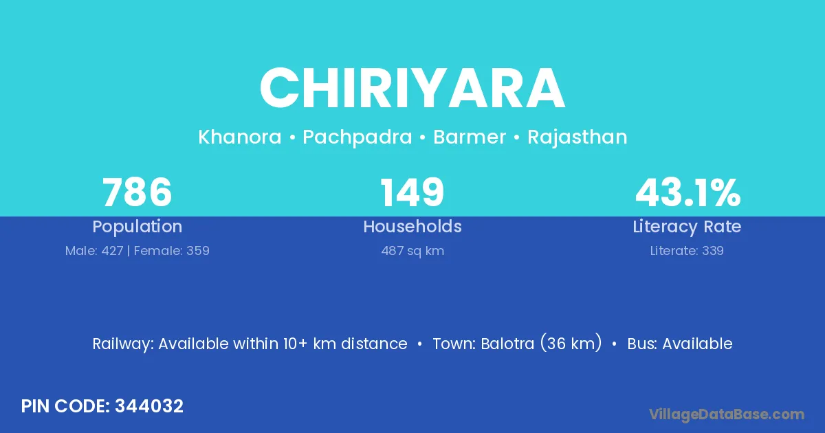 Balotra (36 km) is the nearest town to Chiriyara village for major economic activities and is located approximately 36 km away.