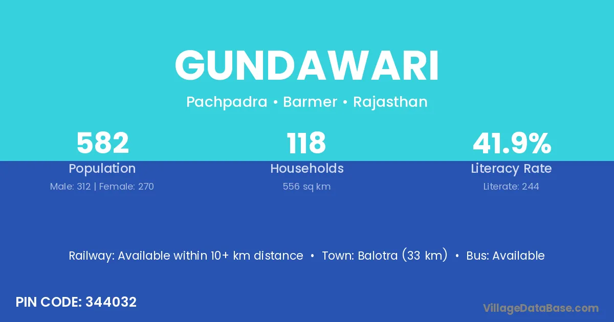Balotra (33 km) is the nearest town to Gundawari village for major economic activities and is located approximately 33 km away.