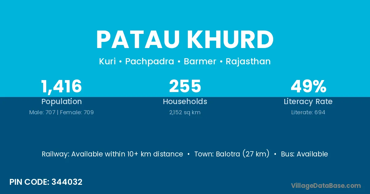 Balotra (27 km) is the nearest town to Patau Khurd village for major economic activities and is located approximately 27 km away.