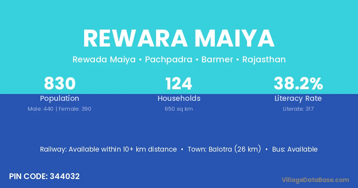 Balotra (26 km) is the nearest town to Rewara Maiya village for major economic activities and is located approximately 26 km away.
