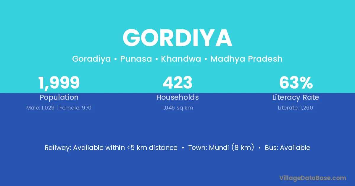 Barmer (117 km) is the nearest town to Gordiya village for major economic activities and is located approximately 117 km away.