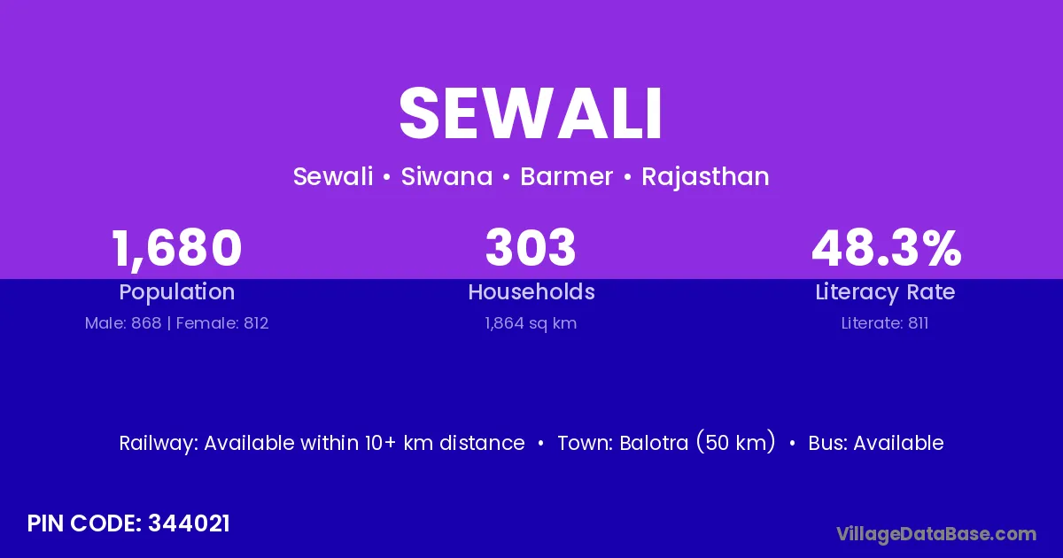 Balotra (50 km) is the nearest town to Sewali village for major economic activities and is located approximately 50 km away.