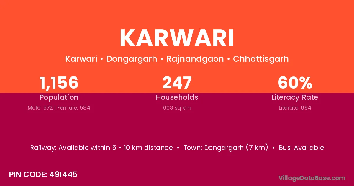 Karwari village has a total population of 1,611 people, of which 893 are males and 718 are females.