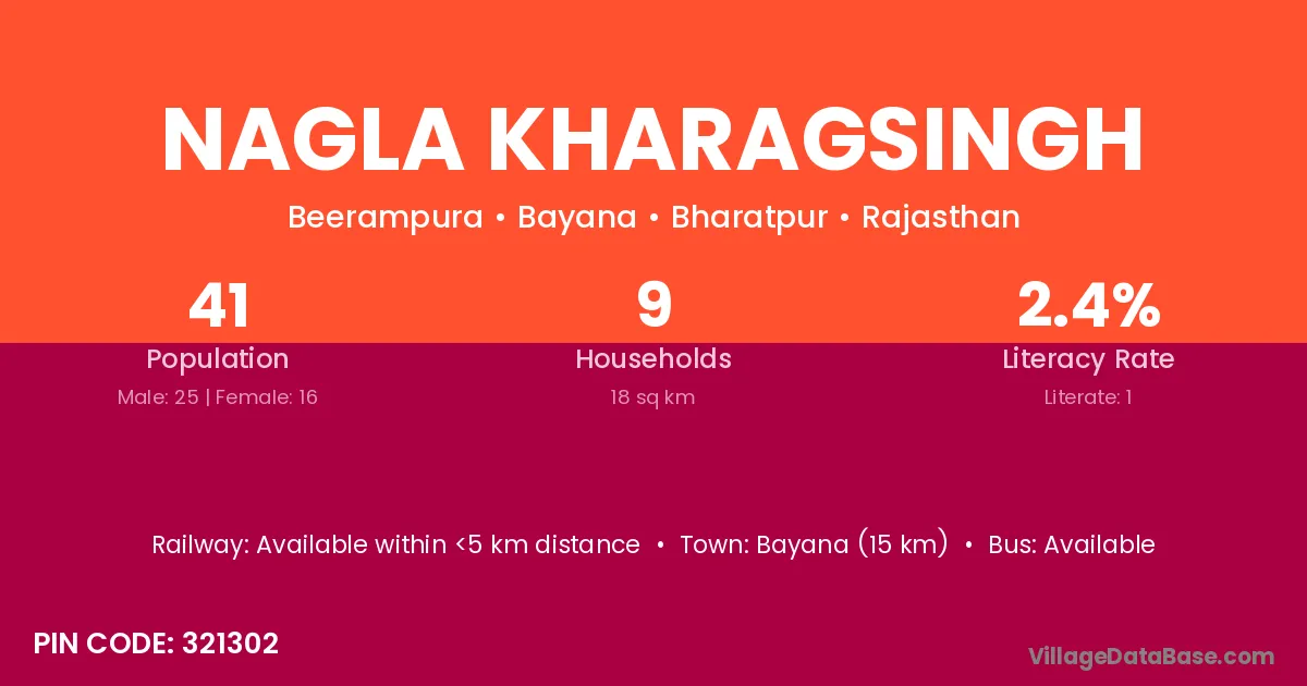 Bayana (15 km) is the nearest town to Nagla Kharagsingh village for major economic activities and is located approximately 15 km away.