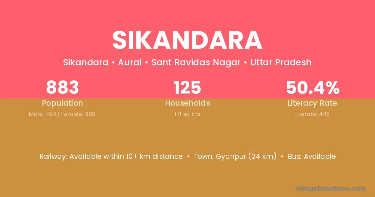 Bayana (17 km) is the nearest town to Sikandara village for major economic activities and is located approximately 17 km away.