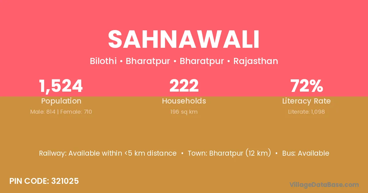 Bharatpur (12 km) is the nearest town to Sahnawali village for major economic activities and is located approximately 12 km away.