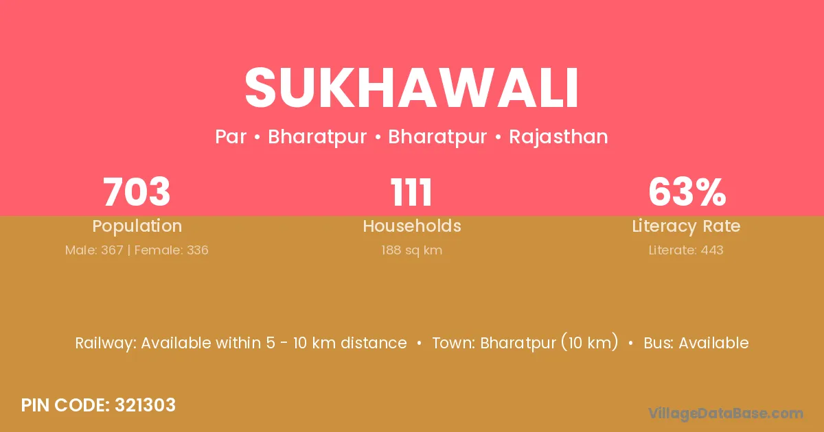 Bharatpur (10 km) is the nearest town to Sukhawali village for major economic activities and is located approximately 10 km away.