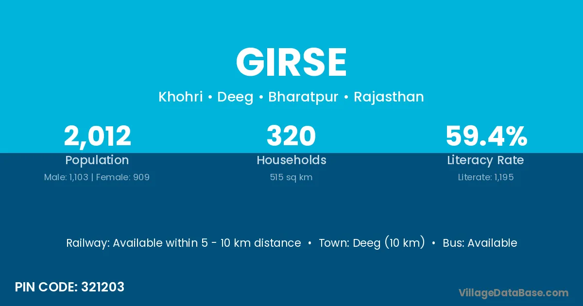Deeg (10 km) is the nearest town to Girse village for major economic activities and is located approximately 10 km away.