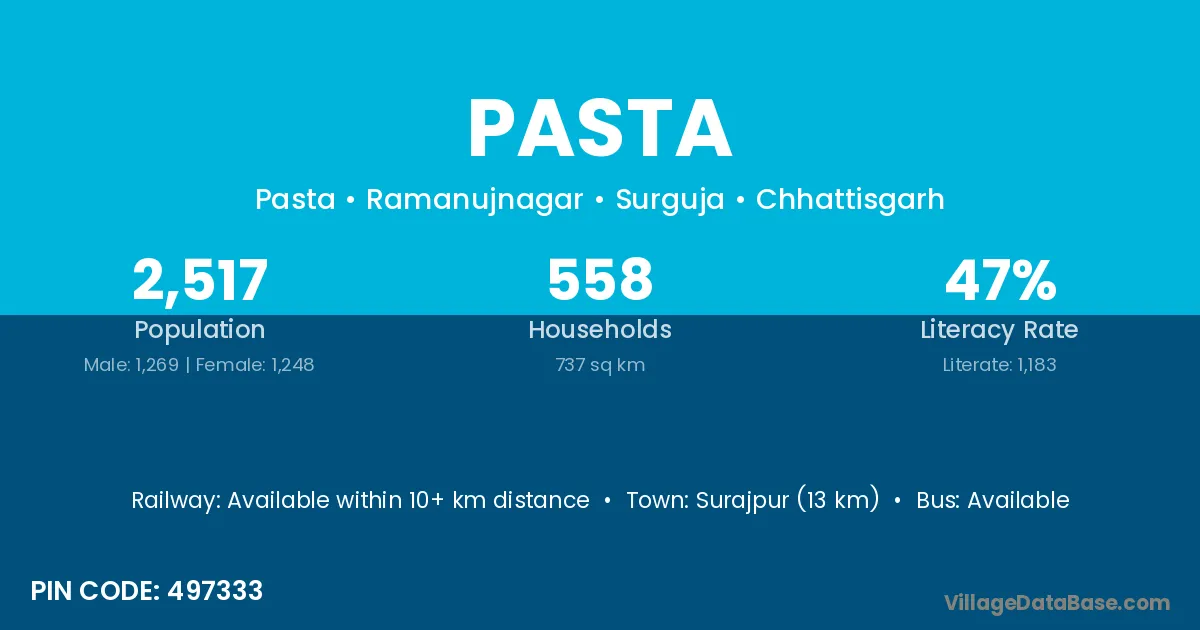 According to Census 2011 information, the village code of Pasta village is 321203.