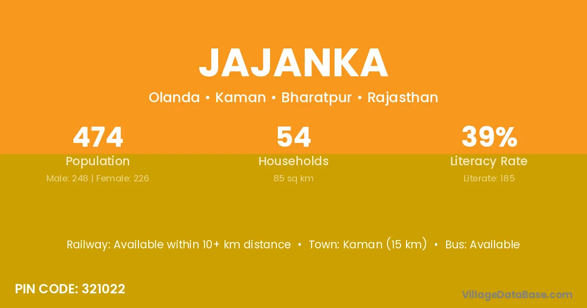 Kaman (15 km) is the nearest town to Jajanka village for major economic activities and is located approximately 15 km away.