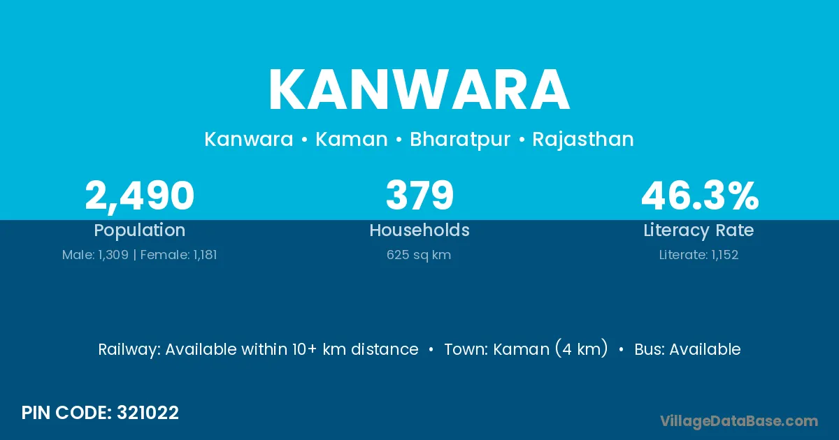 Kaman (4 km) is the nearest town to Kanwara village for major economic activities and is located approximately 4 km away.