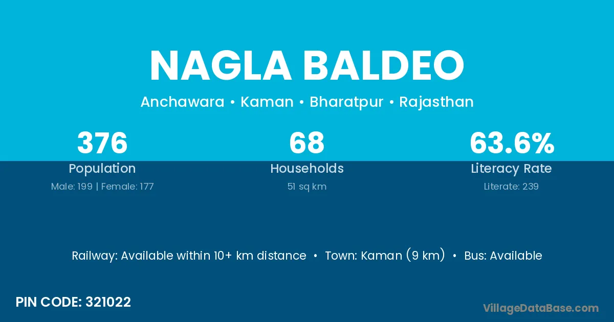 Nagla Baldeo village has a total population of 376 people, of which 199 are males and 177 are females.