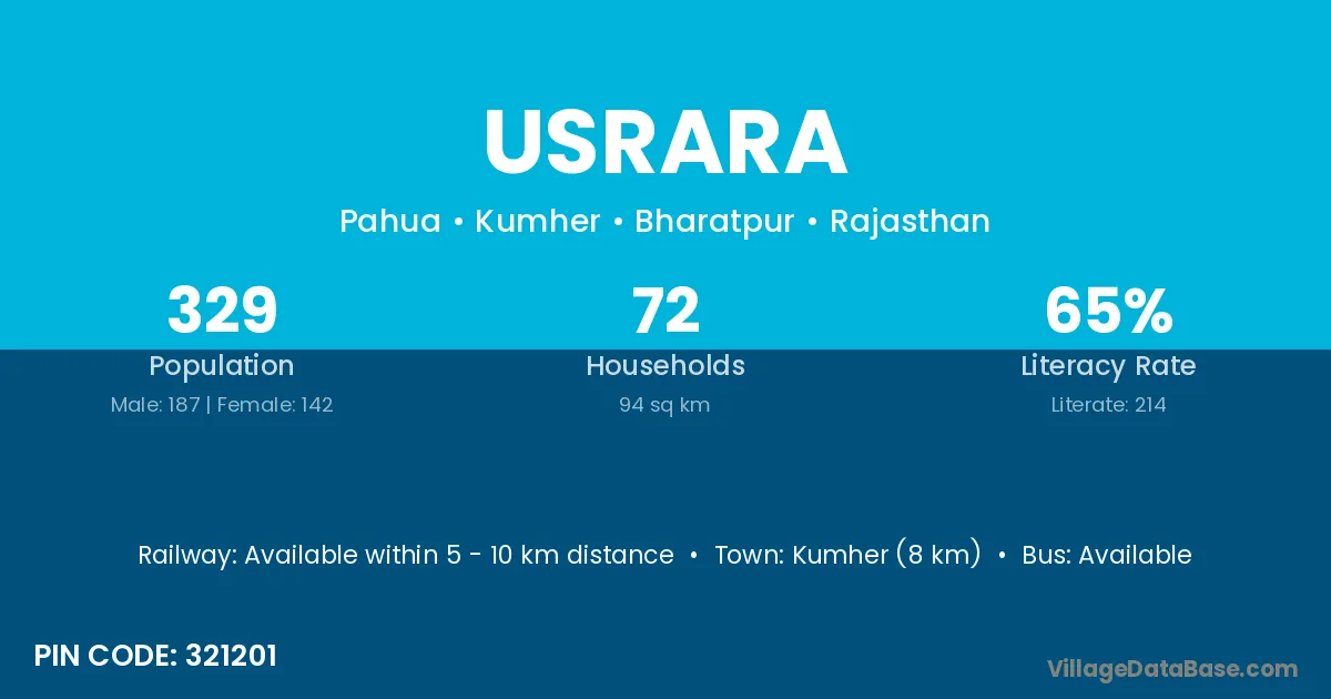 Kumher (8 km) is the nearest town to Usrara village for major economic activities and is located approximately 8 km away.