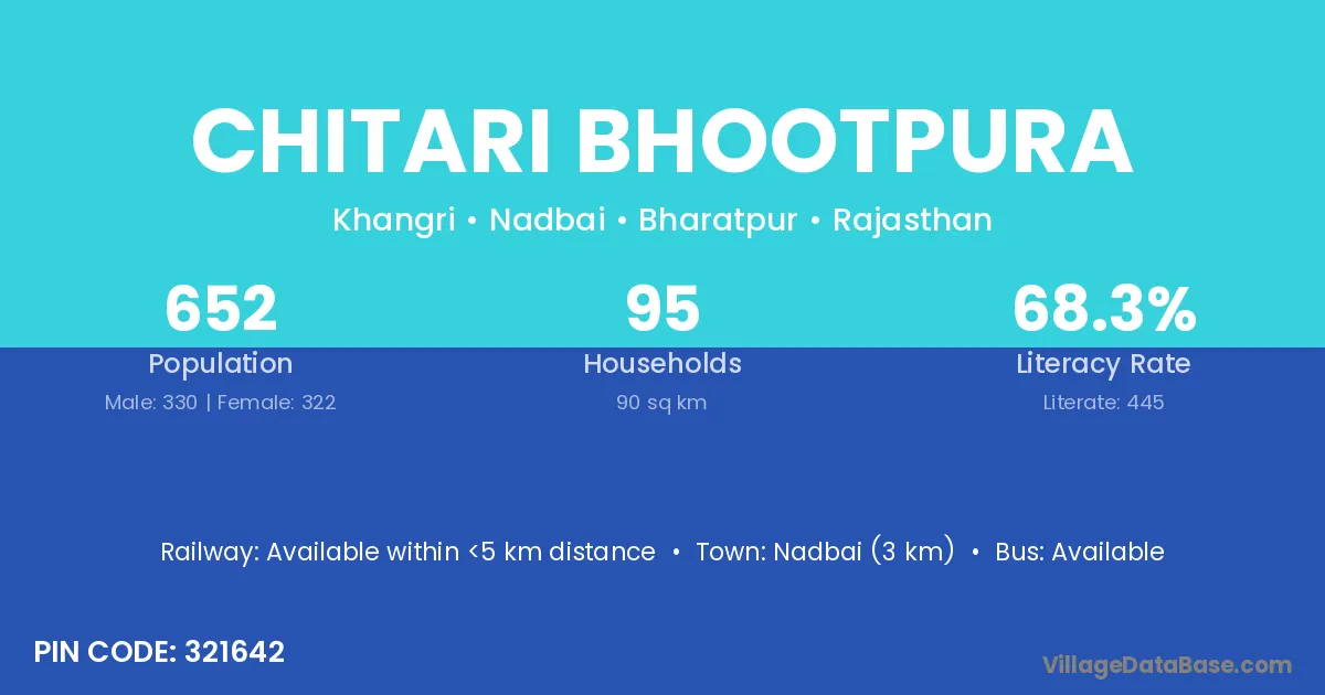 Nadbai (3 km) is the nearest town to Chitari Bhootpura village for major economic activities and is located approximately 3 km away.