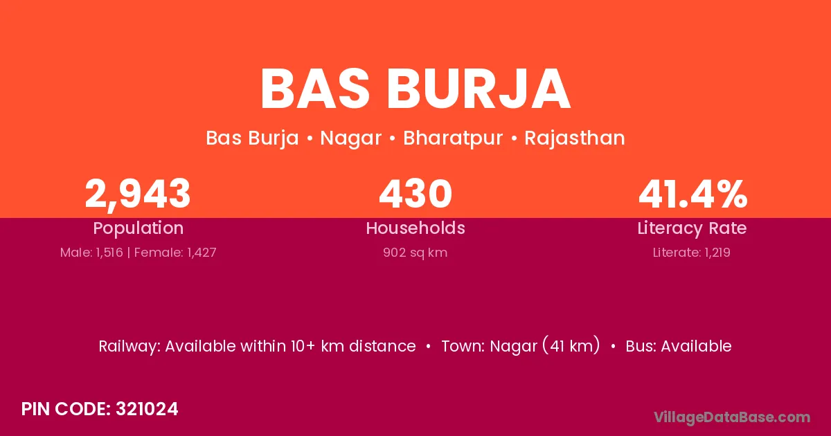 Nagar (41 km) is the nearest town to Bas Burja village for major economic activities and is located approximately 41 km away.
