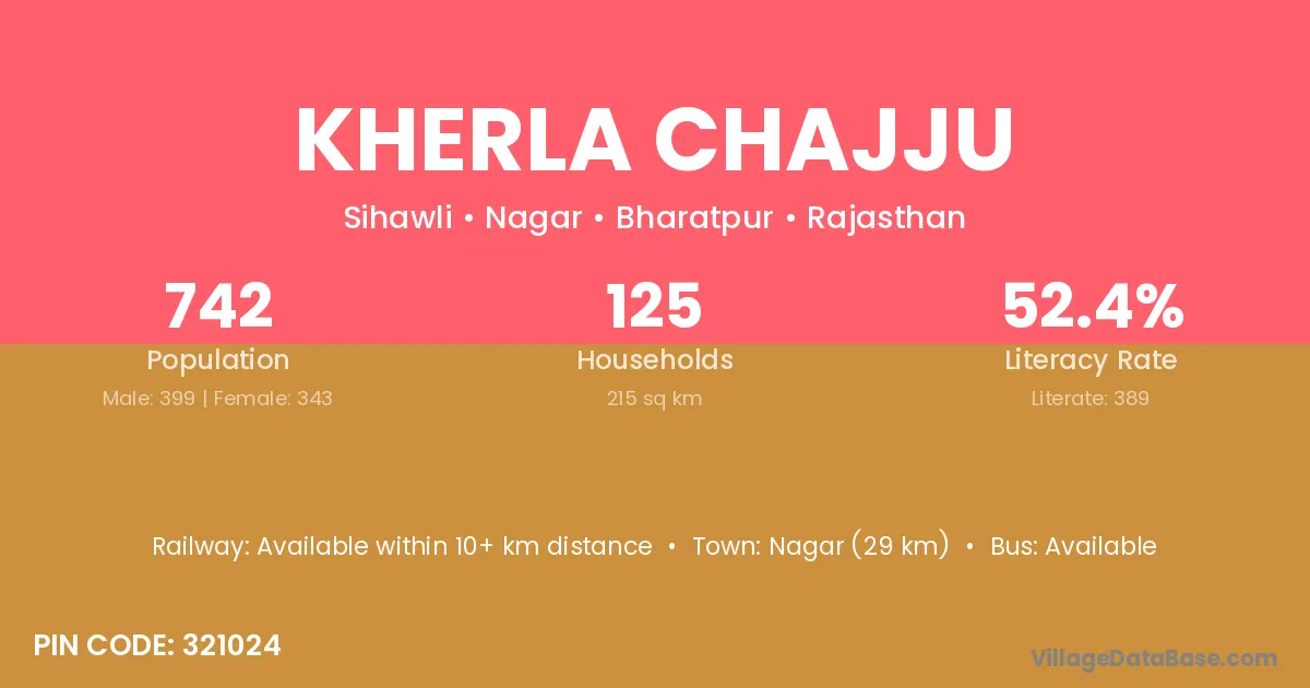 Nagar (29 km) is the nearest town to Kherla Chajju village for major economic activities and is located approximately 29 km away.