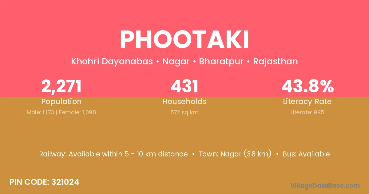 According to Census 2011 information, the village code of Phootaki village is 321024.
