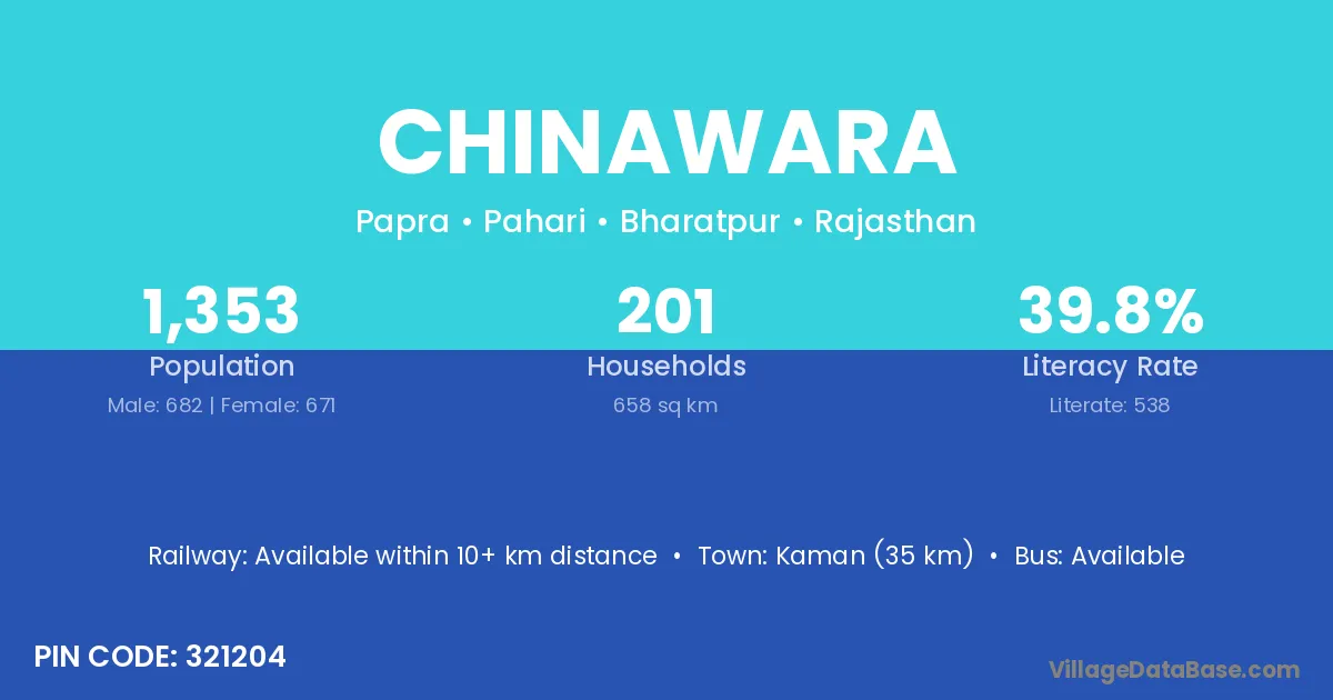 Kaman (35 km) is the nearest town to Chinawara village for major economic activities and is located approximately 35 km away.