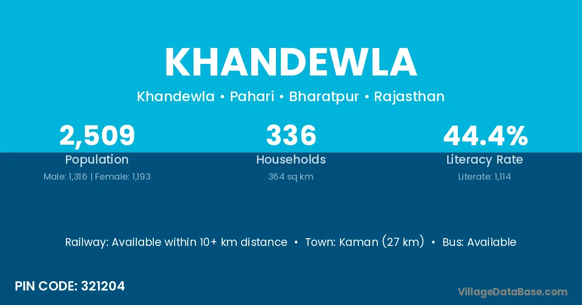 Kaman (27 km) is the nearest town to Khandewla village for major economic activities and is located approximately 27 km away.