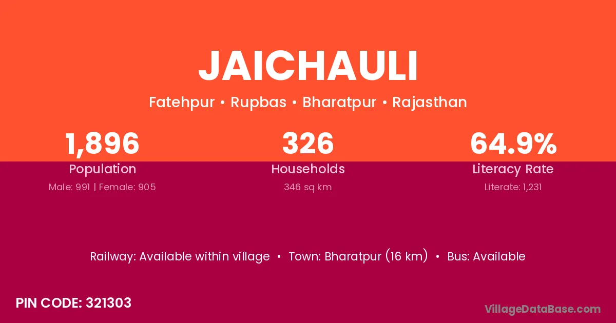 Bharatpur (16 km) is the nearest town to Jaichauli village for major economic activities and is located approximately 16 km away.
