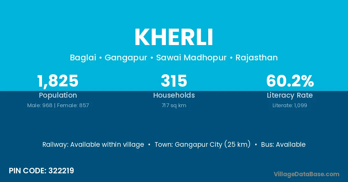 Bharatpur (47 km) is the nearest town to Kherli village for major economic activities and is located approximately 47 km away.