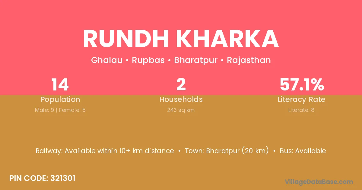 Rundh Kharka village has a total population of 14 people, of which 9 are males and 5 are females.