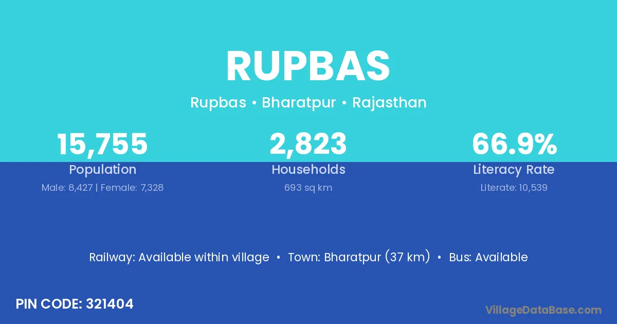 Bharatpur (37 km) is the nearest town to Rupbas village for major economic activities and is located approximately 37 km away.
