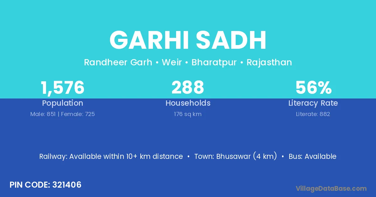Bhusawar (4 km) is the nearest town to Garhi Sadh village for major economic activities and is located approximately 4 km away.