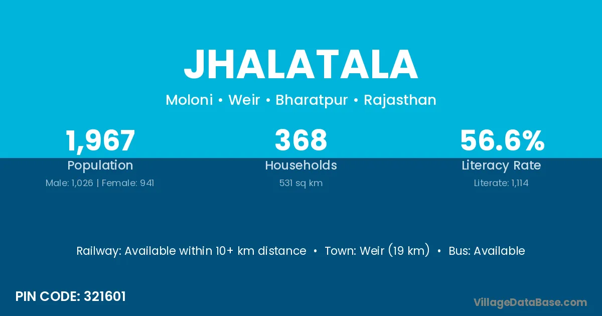 Weir (19 km) is the nearest town to Jhalatala village for major economic activities and is located approximately 19 km away.
