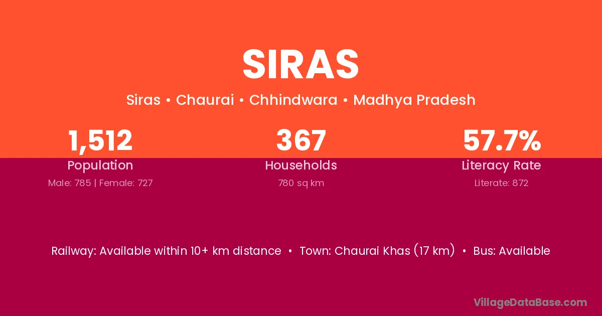 Weir (8 km) is the nearest town to Siras village for major economic activities and is located approximately 8 km away.