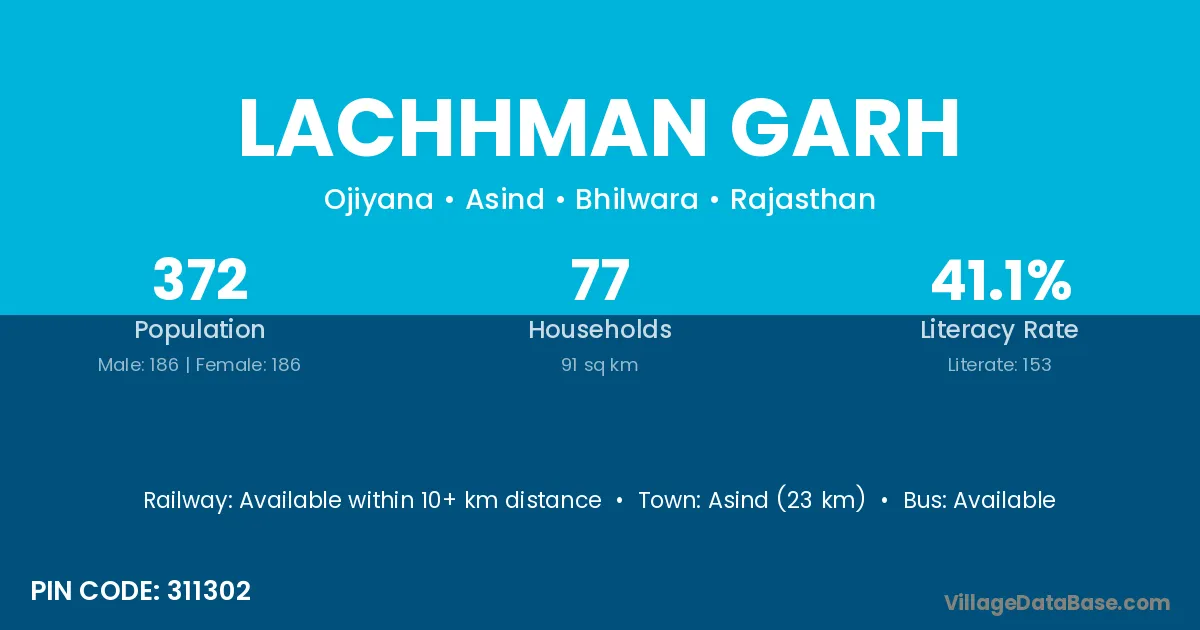 Asind (23 km) is the nearest town to Lachhman Garh village for major economic activities and is located approximately 23 km away.