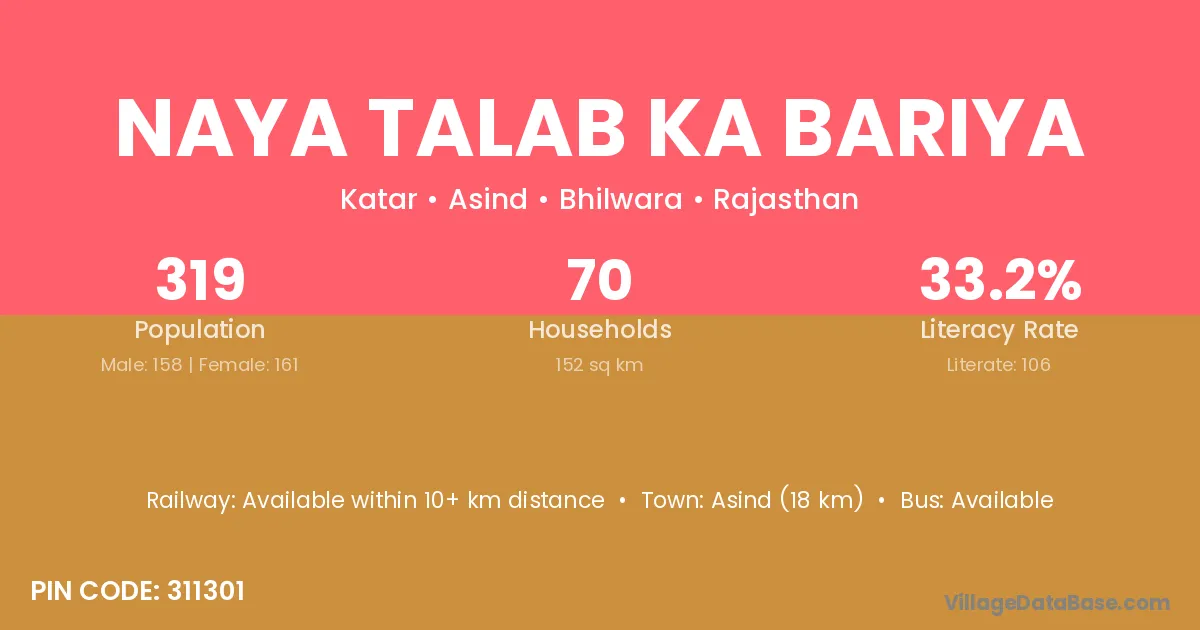 Naya Talab Ka Bariya village has a total population of 319 people, of which 158 are males and 161 are females.