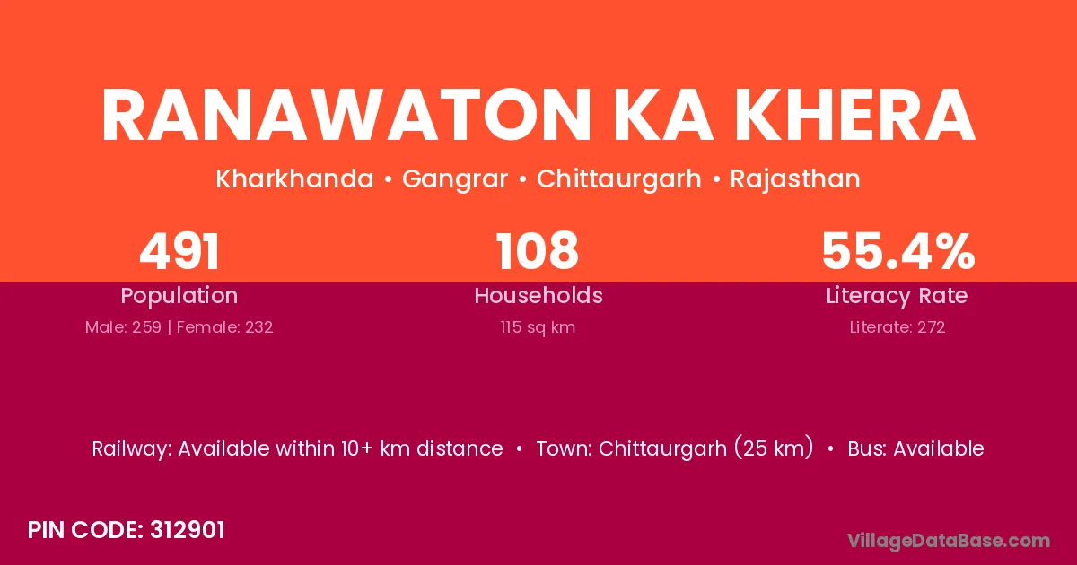 Asind (4 km) is the nearest town to Ranawaton Ka Khera village for major economic activities and is located approximately 4 km away.