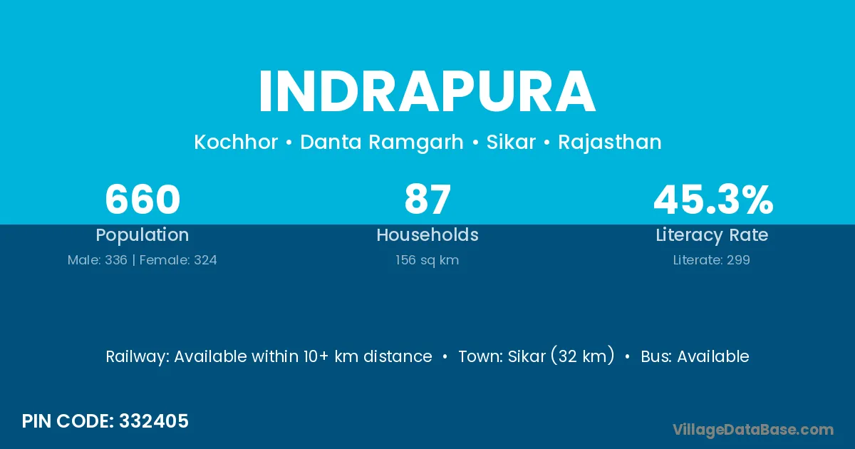 Mandalgarh (35 km) is the nearest town to Indrapura village for major economic activities and is located approximately 35 km away.