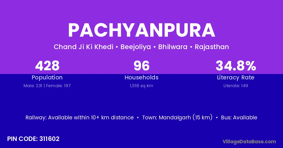Mandalgarh (15 km) is the nearest town to Pachyanpura village for major economic activities and is located approximately 15 km away.