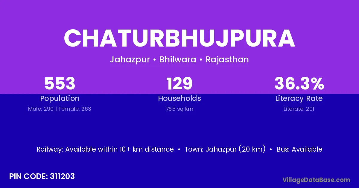 Chaturbhujpura village has a total population of 553 people, of which 290 are males and 263 are females.