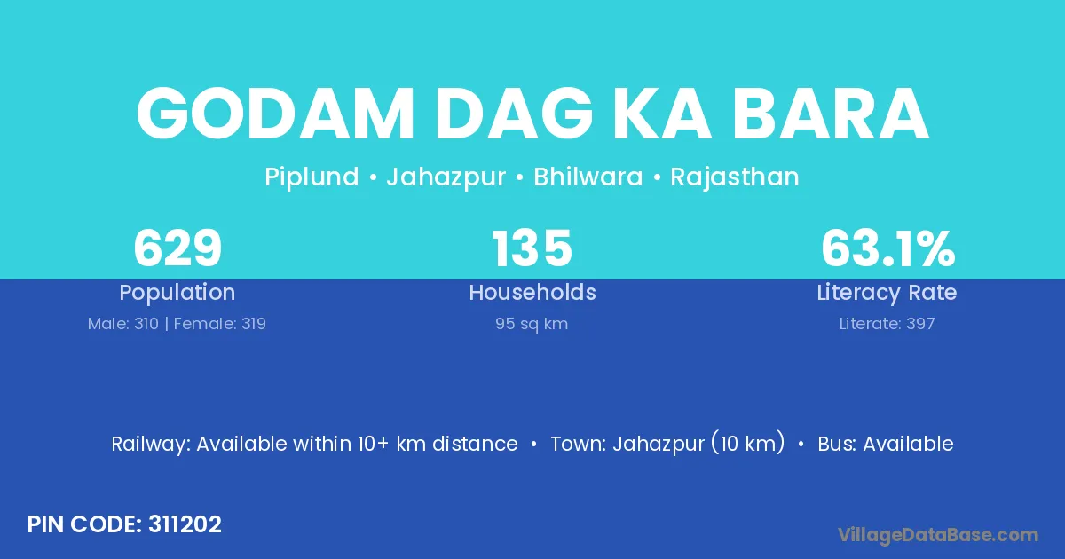 Jahazpur (10 km) is the nearest town to Godam Dag Ka Bara village for major economic activities and is located approximately 10 km away.